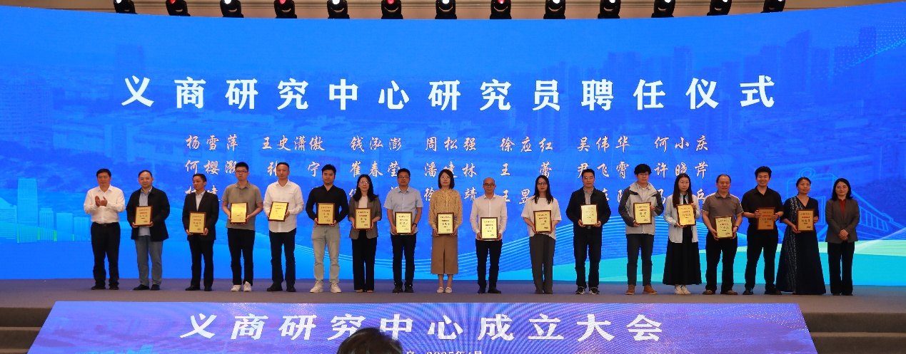 隨后,大會舉行了顧問及研究員聘任儀式,浙江大學管理學院教授鄔愛其、義烏市雙童日用品有限公司董事長樓仲平等多位專家學者和企業(yè)家受聘,為研究中心注入智力動能。