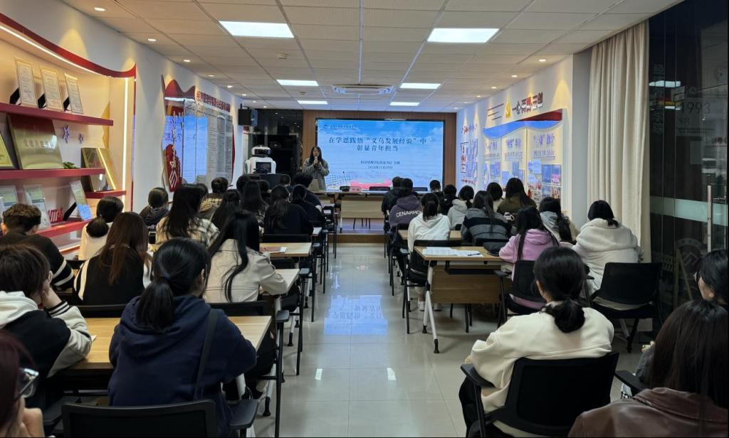 經(jīng)濟(jì)管理學(xué)院黨委書記為學(xué)員們作《在學(xué)思踐悟“義烏發(fā)展經(jīng)驗”中彰顯青年擔(dān)當(dāng)》微黨課,分別從“如何在義烏發(fā)展經(jīng)驗中強(qiáng)自信”“如何在總書記殷殷囑托中立大志”“如何在職業(yè)教育強(qiáng)國新征程上提技能”,闡述了新時代背景下青年應(yīng)當(dāng)如何面對時代考題。她對全體學(xué)員提出三點(diǎn)要求,一是要在深刻理解義烏發(fā)展經(jīng)驗中,秉承“尚德崇文、創(chuàng)業(yè)立身”的校訓(xùn),扛起青春擔(dān)當(dāng);二是要在主動踐行義烏發(fā)展經(jīng)驗中,堅持守正創(chuàng)新、薪火相傳,詮釋好青春的奮斗力量;三是要在勇敢面向未來上圓夢青春誓言,仰望星空不忘初心、腳踏實地勇毅前行。