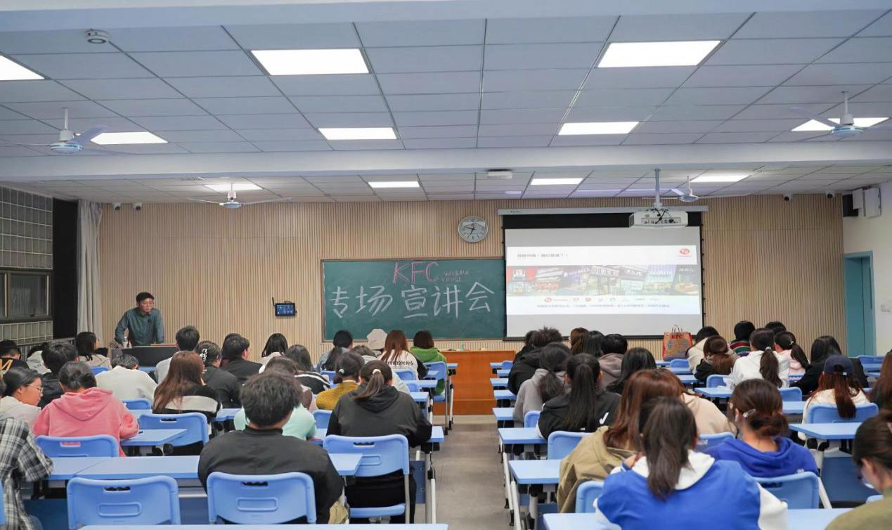 宣講會(huì)上,張士佳詳細(xì)介紹了杭州肯德基有限公司的機(jī)構(gòu)組成、發(fā)展現(xiàn)狀及人才培養(yǎng)計(jì)劃,著重講解了企業(yè)文化及職工薪資待遇,分享公司內(nèi)部人事管理模式。他還深入講解培養(yǎng)計(jì)劃、訓(xùn)練體系以及數(shù)字化學(xué)習(xí)生態(tài)系統(tǒng)。張士佳表示,浙江是中國(guó)肯德基門店數(shù)最多的省份,公司未來具有非常大的發(fā)展?jié)摿?/span>,公司還在擴(kuò)大規(guī)模中,亟需更多新鮮血液為公司增添動(dòng)力。