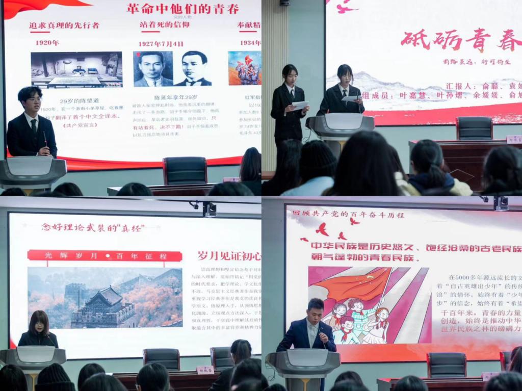 施凱耀同學以“少年當立凌云志,奮進逐夢攬星辰”為宣言,呼吁大家要承擔起祖國的富強,民族的復興,人民的幸福之時代擔當,盡其才,奮其志。謝家俊同學以“砥礪青春壯志,用青春繪畫山河”為主題講述革命先烈的青年事跡,新中國的崛起之路,并融入了分黨校學習的心得體會。他表示要繼續(xù)錘煉黨性、知行合一,做一個負責任的新青年,樹立遠大理想,詮釋青春奮斗。