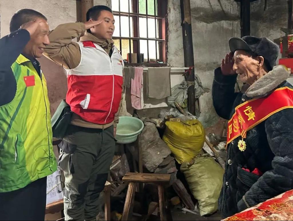 退伍大學(xué)生慰問抗戰(zhàn)老兵
