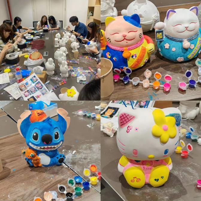 在“陶藝的療愈”模塊,同學(xué)們通過觸摸泥土、彩繪石膏等陶藝創(chuàng)作活動,讓內(nèi)心的浮躁與壓力得以沉淀。在泥土的流轉(zhuǎn)與色彩的交織中,他們盡情釋放創(chuàng)造力,體驗(yàn)涂鴉藝術(shù)的樂趣與滿足。這次陶藝創(chuàng)作不僅鍛煉了同學(xué)們的手眼協(xié)調(diào)能力,更讓他們在創(chuàng)作過程中找到了心靈的慰藉與安寧。
