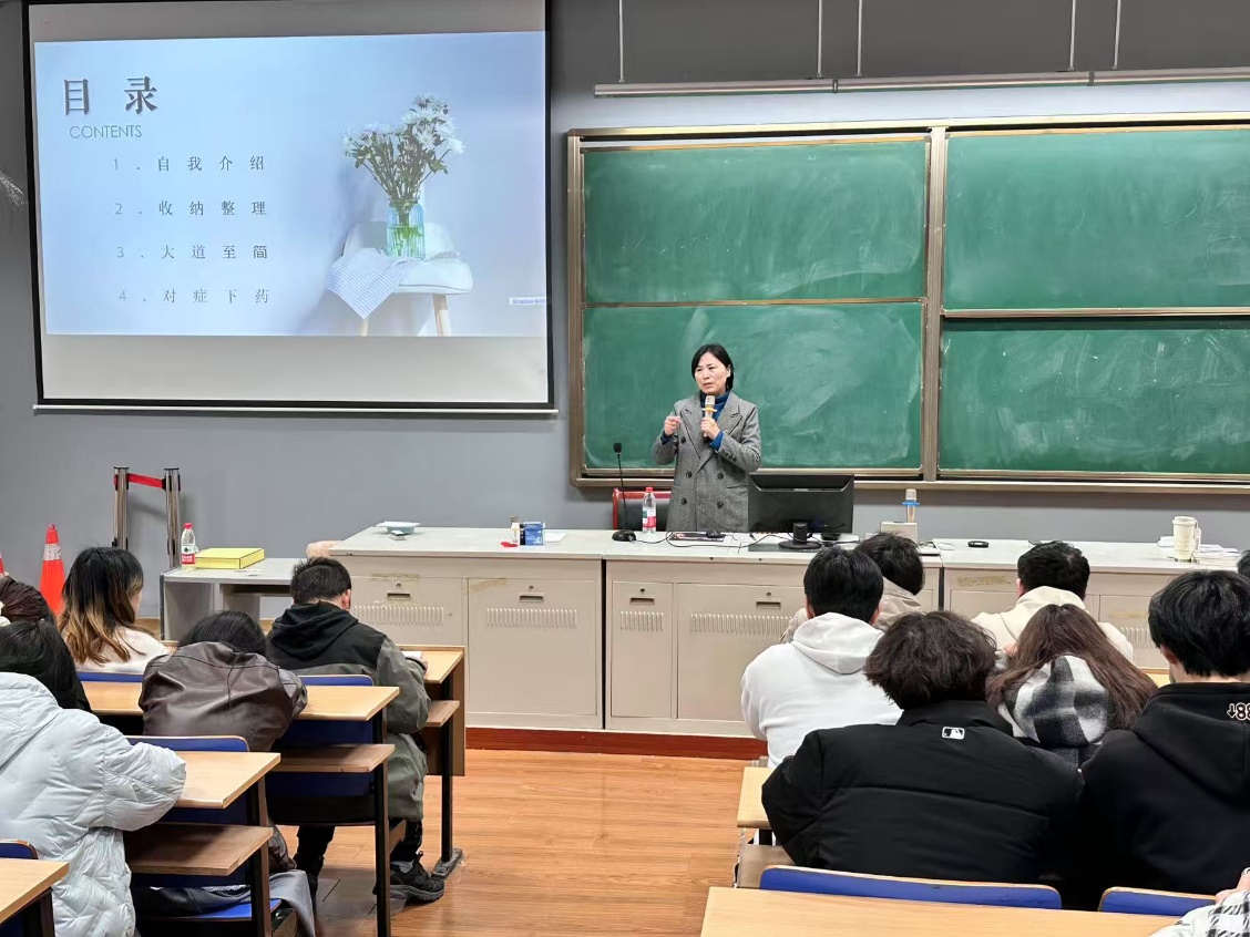 近日,經(jīng)濟(jì)管理學(xué)院在長(zhǎng)廊階梯教室舉辦寢室整理收納講座。義烏市金翼文化國(guó)學(xué)部負(fù)責(zé)人、“大道至簡(jiǎn)”整理收納法主理人張玉梅老師受邀主講,全院寢室長(zhǎng)參與學(xué)習(xí)。