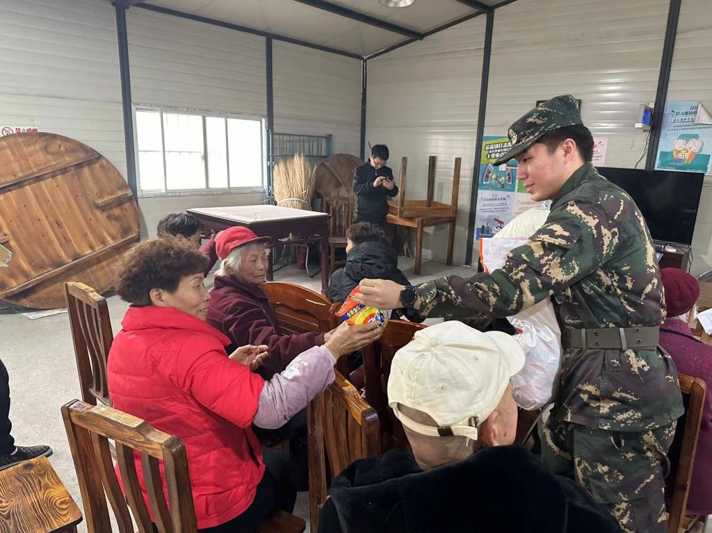 志愿之綠,顯擔(dān)當(dāng)?shù)咨?/span>秉持著“退役不褪色”的優(yōu)秀特質(zhì),退役軍人也加入志愿服務(wù)隊(duì)伍,開展“愛老助老”志愿服務(wù),不僅為老人送上暖心生活必需品,還和老人親切交流,關(guān)注他們的身體健康和實(shí)際需求。